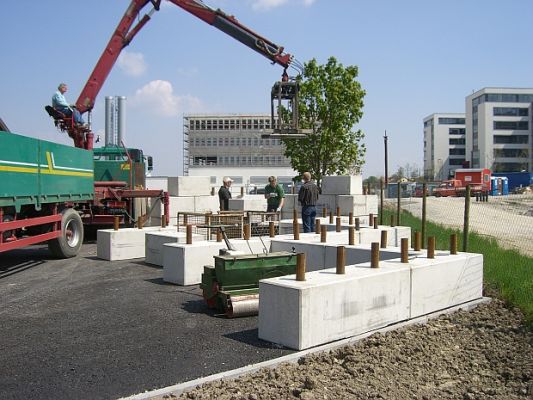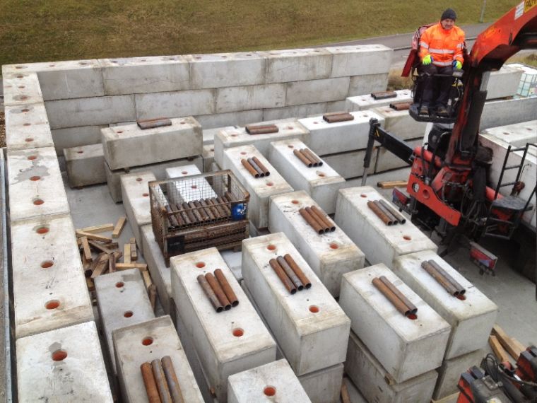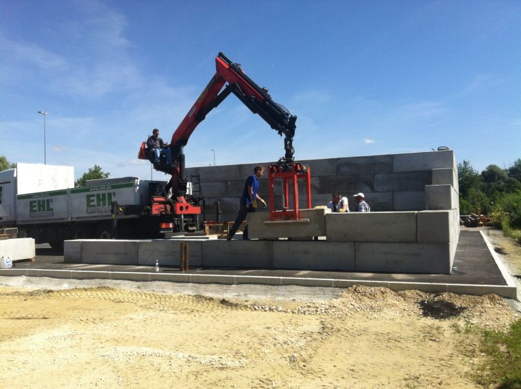 Für den Aufbau der Multibloc-Module werden keine aufwendigen Maschinen benötigt - ein Radlader oder Mobilbagger mit Kettengehänge reicht vollkommen aus. Dieser kann durch Ihr Personal erfolgen, gerne übernehmen wir diese Arbeit auch für Sie.